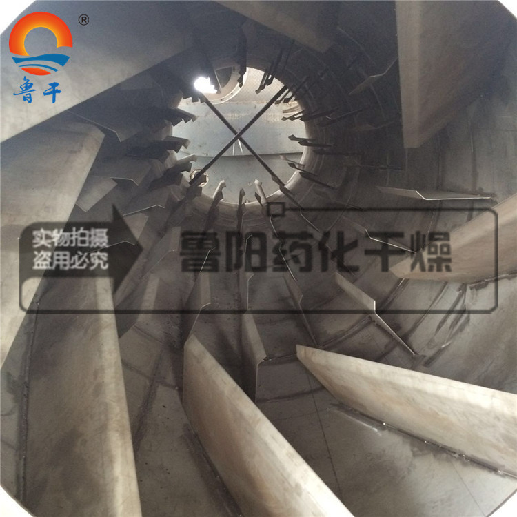 濕物料加入干燥機后,在筒內均布的抄板器翻動下,物料在干燥機內均勻分布與分散,并與并流(逆流)的熱空氣充分接觸,加快了干燥傳熱。傳質。在干燥過程中,物料在帶有傾斜的抄板和熱氣流的作用下,可調控地運動至于干燥機另一段星型卸料閥排出成品。