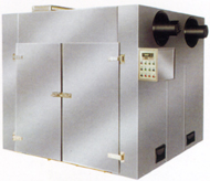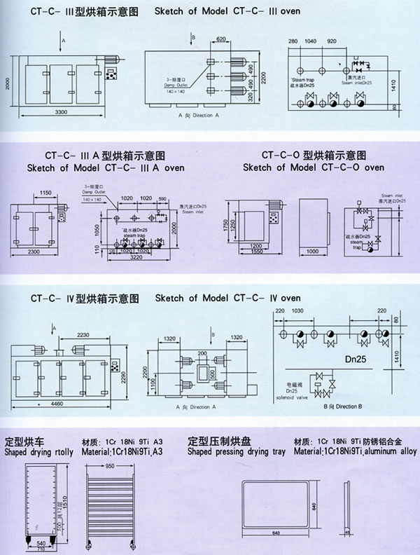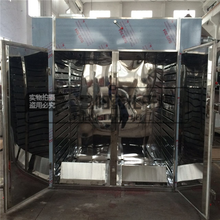 2、利用強制通風作用,箱內設有可調式分風板,物料干燥均勻。熱源可采用蒸汽、熱水、電、遠紅外,選擇廣泛。