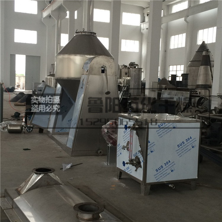 SZG系列雙錐回轉(zhuǎn)真空干燥機(jī)是集混合-干燥于一體的新型干燥機(jī)。將冷凝器,真空泵與干燥機(jī)配套,組成真空干燥裝置。(如不需回收溶劑,冷凝器可以不用)本機(jī)設(shè)計(jì)先進(jìn),內(nèi)部結(jié)構(gòu)簡(jiǎn)單,清掃容易,物料能全部排出,操作簡(jiǎn)便。能降低勞動(dòng)強(qiáng)度改善工作環(huán)境。同時(shí)因容器本身回轉(zhuǎn)物料時(shí)物料亦轉(zhuǎn)動(dòng)但容器壁上不積料,故傳熱系數(shù)較高,干燥速率大,不僅節(jié)約能源,而且物料干燥均勻充分,質(zhì)量好。可廣泛應(yīng)用于制藥、化工、食品、染料等行業(yè)物料的干燥。符合藥品管理規(guī)范“GMP”的要求。