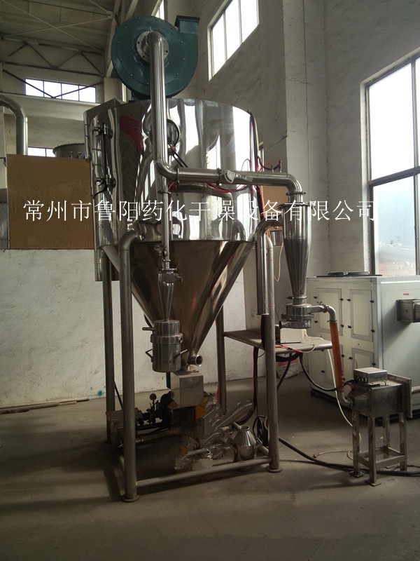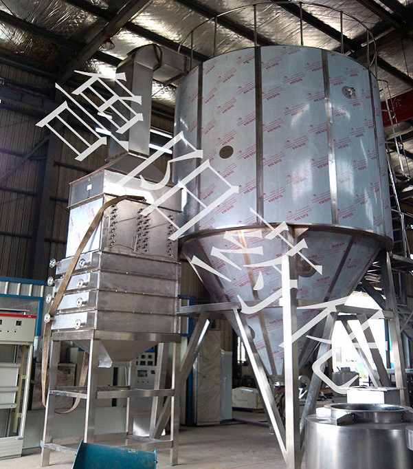 中藥浸膏專用噴霧干燥機是吸收國外技術開發的適用于熔點低、含糖高的中藥產品的干燥機械,并具有不粘壁、物料不焦化、不易吸潮等特點。該裝置根據干燥產品的特點和性質確定噴霧干燥的工藝條件,自動化程度高、操作方便,符合GMP要求,該裝置的成功開發,解決了多年來許多熔點低、含糖高的中藥產品不能用于噴霧干燥的技術難點,也是對噴霧干燥在中藥制藥中的應用技術研究的新發展。