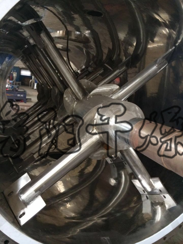 本機是一種新穎臥式間歇式真空干燥設備,濕物料經傳導蒸發,帶有刮板攪拌器不斷清除熱面上的物料,并在容器內推移形成循環流,水份蒸發后由真空泵抽出。