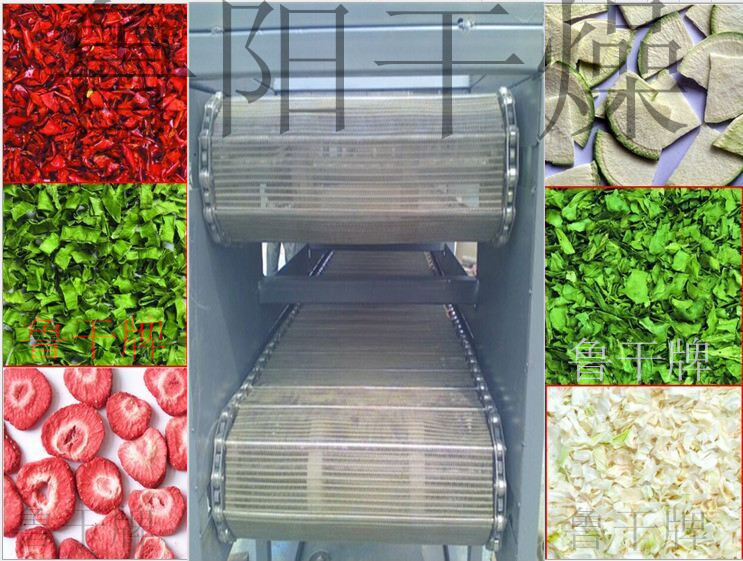 能滿足根、莖、葉類條狀、塊狀、片狀、大顆粒狀等蔬菜物料的干燥和大批量連續(xù)生產(chǎn),同時能最大限度的保留產(chǎn)品的營養(yǎng)成份及顏色等。