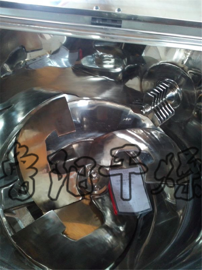 3、由于上述二種葉漿的高速旋轉,所以能使物料在較短時間內達到混合均勻的目的,其混合速度和均勻速度是國內各種混合機無法達到的、混合后的物料中間無顆粒狀,混合均勻速度達百分之百;